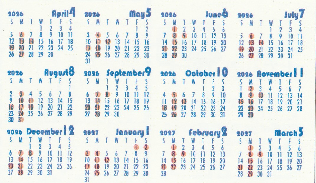 オレンジの数字が定休日です